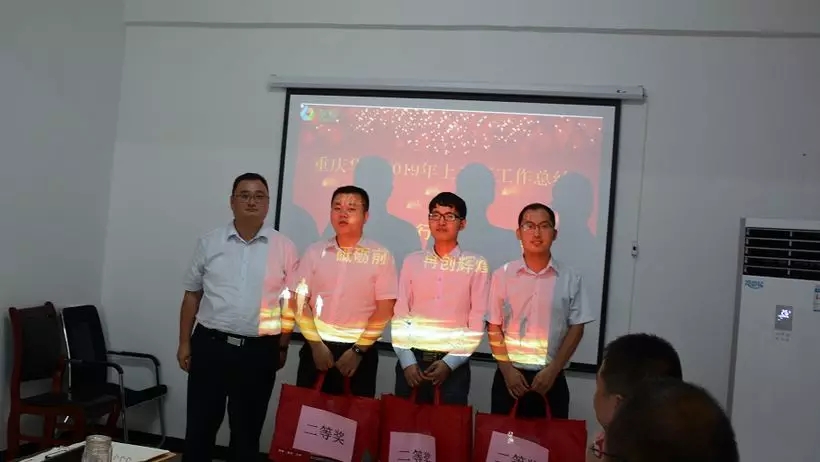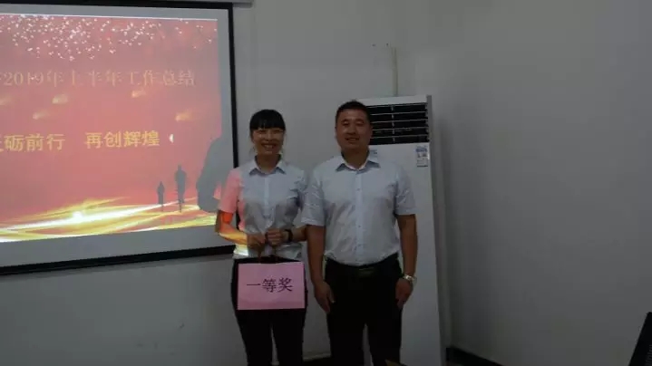 匯報完畢后,由參會人員匿名評選出匯報最好的前四名,由總經(jīng)理代進為一等獎獲得者頒發(fā)禮品,公司行政副總張海波為二等獎獲得者頒獎,會議圓滿落幕。